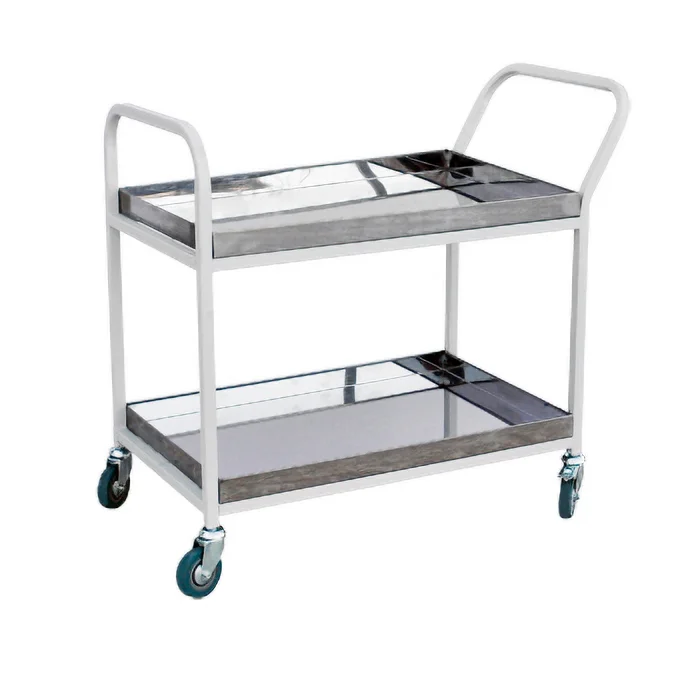 Тележка внутрикорпусная с бортом обеспечивает наиболее удобную и безопасную транспортировку любых инструментов, медикаментов или медицинских материалов по помещению. Для ее простого перемещения в конструкции предусмотрены четыре колесные опоры. Зафиксировать положение тележки позволяют тормоза, которыми оснащены 2 из 4 колес. В тележке установлено две полки, каждая из которых оснащена невысоким бортиком — 5 см.