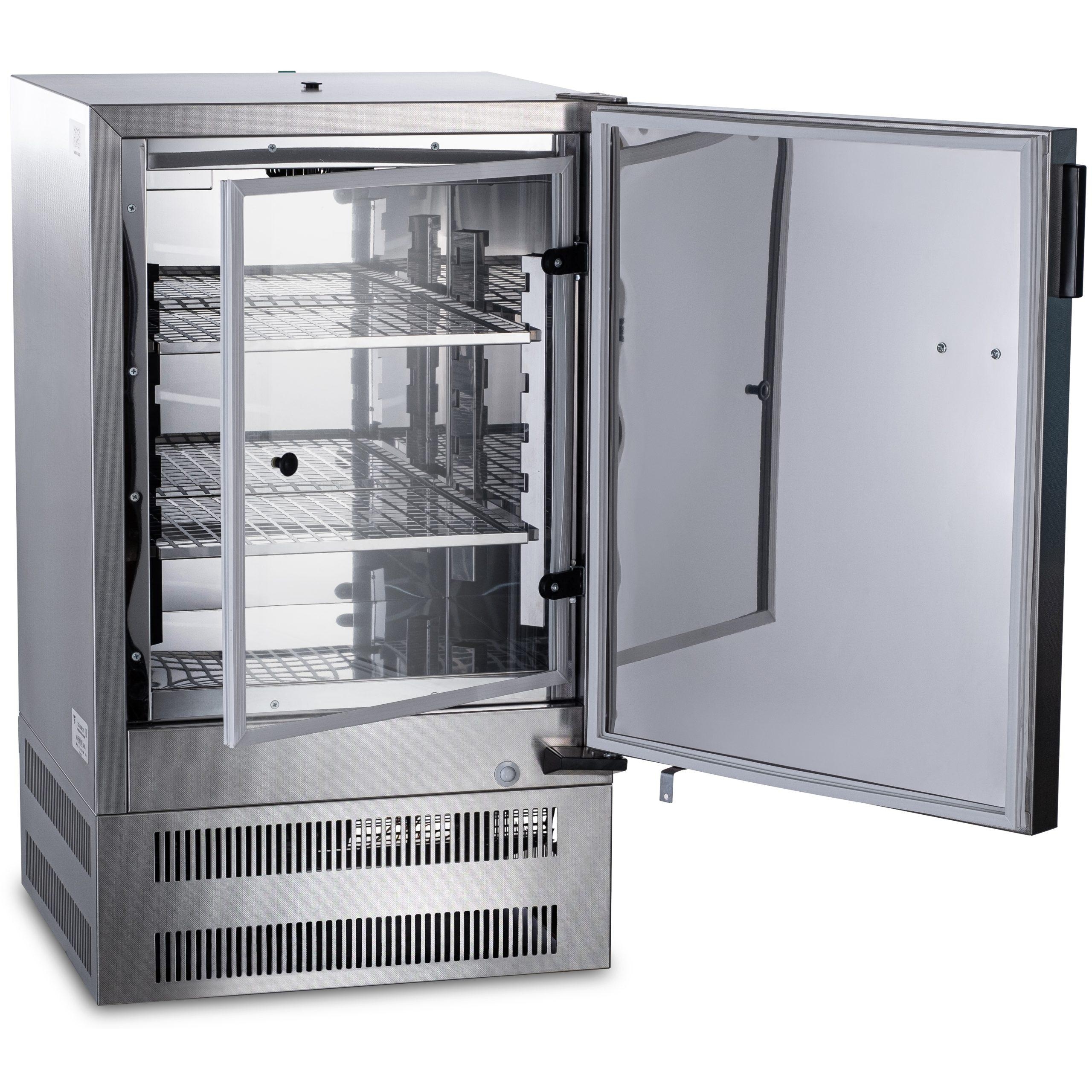 Корпус и внешняя дверь изготовлены из стали с белым матовым покрытием — оно устойчиво к истиранию и легко очищается. Внутренняя дверь выполнена из безопасного стекла марки М1, рассчитанного на температуру до 120 °C, что позволяет вести наблюдение, не нарушая стабильность среды.