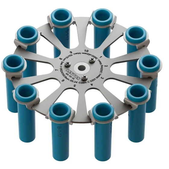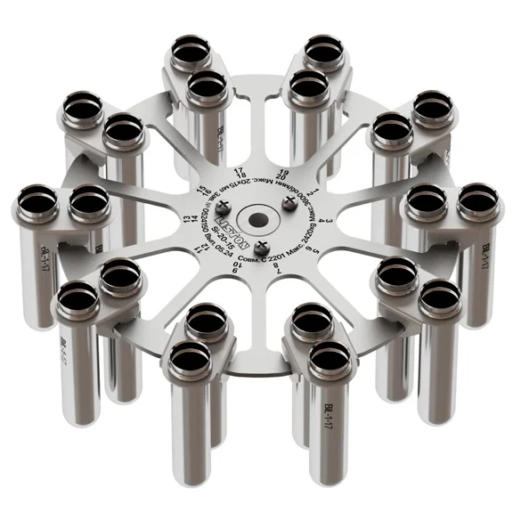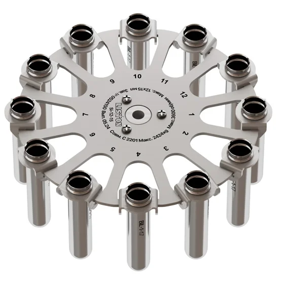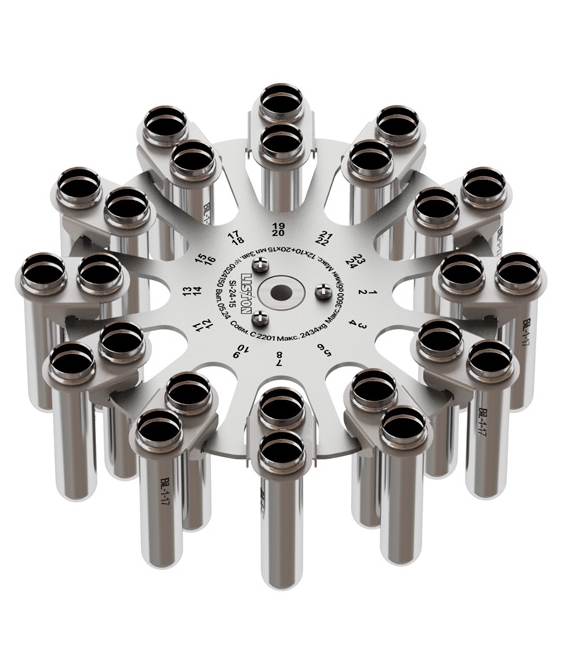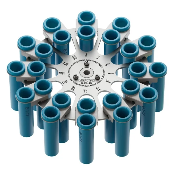 В базовой конфигурации установлен ротор S-20-15 из стали на 20 пробирок объемом до 15 мл. Это универсальное решение для большинства рутинных задач, включая подготовку плазмы. Пробирки не входят в комплект поставки. Производитель поддерживает быструю поставку адаптеров и запасных частей со склада, что сокращает простои и упрощает планирование обслуживания.