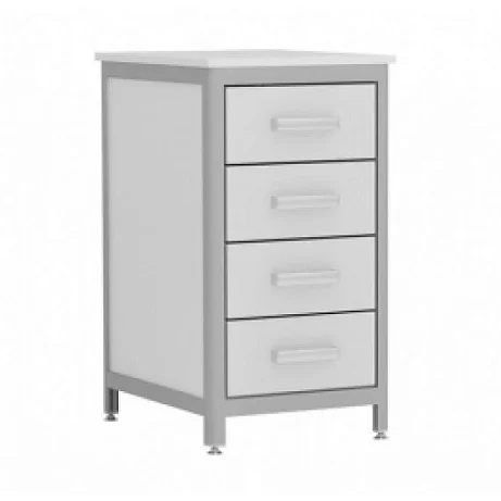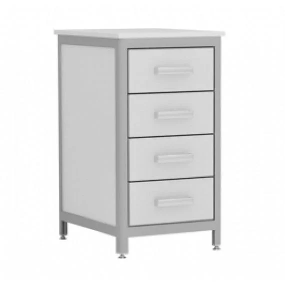 Тумба лабораторная АСК ТЛс.04.00 Стандарт (разборная) представляет собой лабораторную тумбу с четырьмя выдвижными ящиками. Она отлично подходит для использования в лабораториях, медицинских учреждениях. Тумба отлично подходит для хранения лабораторной посуды, инструментов, документов, реактивов, инвентаря и так далее. Модель рассчитана на стационарное использование, каркас выполнен из алюминия и ЛДСП толщиной 8 мм, фасад произведен из ЛДСП толщиной 16 мм. Торцы обработаны ПВХ кромкой 2 мм. Столешница произведена из МДФ толщиной 16 мм, в качестве покрытия используется бумажно-слоистый пластик. Материал подходит для использования щелочных и кислотных растворов. Опоры регулируются по высоте. Поставка осуществляется в разобранном виде.