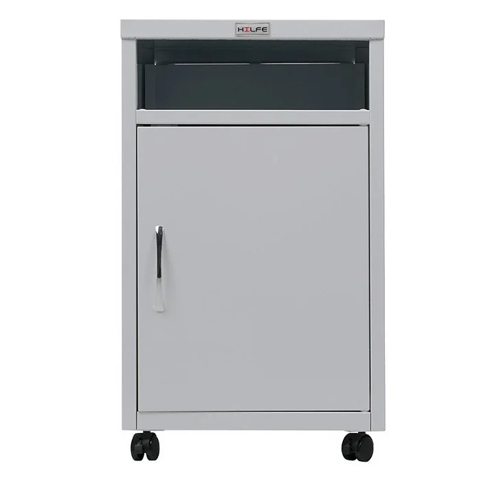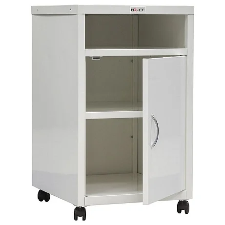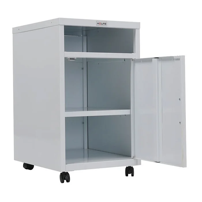 Стальная приставная медицинская тумба МД ТП-3 на колесиках предназначена для хранения одежды, документов, инвентаря. Состоит из нижнего большого отделения с полкой, закрывающегося дверкой с хромированной ручкой, и открытой полки в верхней части. Предусмотрен ключевой замок на дверку, нагрузка на полку около пятнадцати кг. Удобна в эксплуатации. Разборная конструкция. Эта практичная приставная медицинская тумба по приемлемой цене сейчас представлена в Москве в магазине МедМебель с недорогой доставкой.