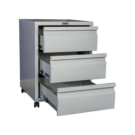 Практичная мобильная тумба с тремя выдвижными ящиками предназначена для хранения различной документации. Предусмотрено обязательное наличие центрального замка Практик, тумба комплектуется колесами, два передних колесика со стопорами. Телескопические шариковые направляющие помогут быстро открыть и закрыть ящик, есть система полного выдвижения ящиков. Дополнительно возможно заказать окраску передней панели тумбы в цвета из палитры, предложенной производителем. В Москве такую тумбу для документов лучше всего недорого заказать в магазине МедМебель, специализирующемся на реализации такого вида мебели.