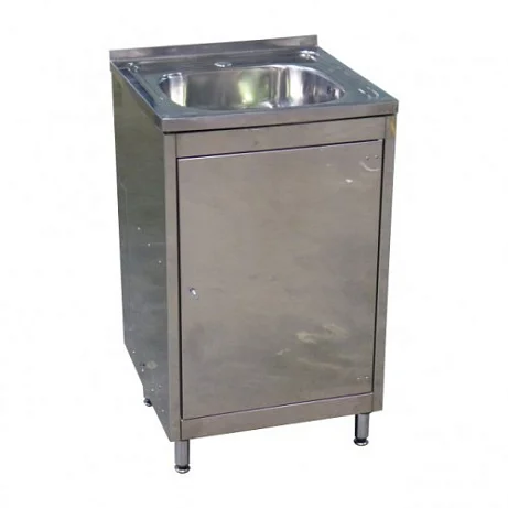 Эта однодверная тумба с одночашечной накладной мойкой идеально подходит для использования в медицине, коммерческого использования и в быту. Мойка размером 500x500 мм выполнена из высококачественной нержавеющей стали и поставляется в комплекте с сифоном. Корпус тумбы изготовлен из нержавеющей стали AISI 430 толщиной 1,0 мм, что обеспечивает надежность и долговечность конструкции. Удобная и практичная в эксплуатации.