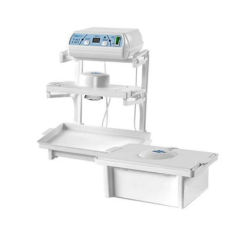 Продуманная подставка позволяет организовать компактное и безопасное рабочее место. Она надежно защищает ультразвуковой генератор от случайного попадания влаги и обеспечивает удобное размещение всех составных частей установки. На передней панели генератора расположены интуитивно понятные органы управления: цифровой дисплей времени, световой индикатор, а также кнопки для запуска процесса и установки его продолжительности.