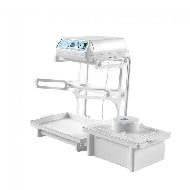 Установка состоит из ультразвукового генератора, излучателя с рабочей емкостью, удобной подставки и пластикового поддона. Подставка спроектирована для организации компактного и безопасного рабочего места: она надежно защищает генератор от случайного попадания влаги и позволяет эргономично разместить все компоненты. На передней панели генератора расположен интуитивно понятный интерфейс с цифровым дисплеем времени, световым индикатором и кнопками управления для запуска и установки продолжительности обработки.