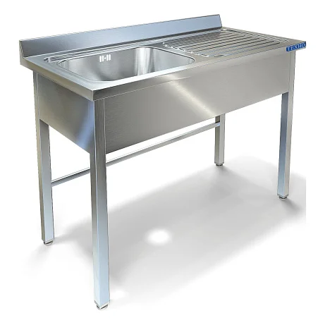 Практичная профессиональная мойка — для посуды, продуктов и кухонного инвентаря. Односекционная цельнотянутая чаша и удобный сушильный стол выполнены из пищевой нержавейки AISI 304 (1 мм), снизу — шумопоглощающая изоляция. Кромки загнуты, большой пристенный борт защищает от разбрызгивания, а углубление по периметру не даёт воде уйти за пределы столешницы.