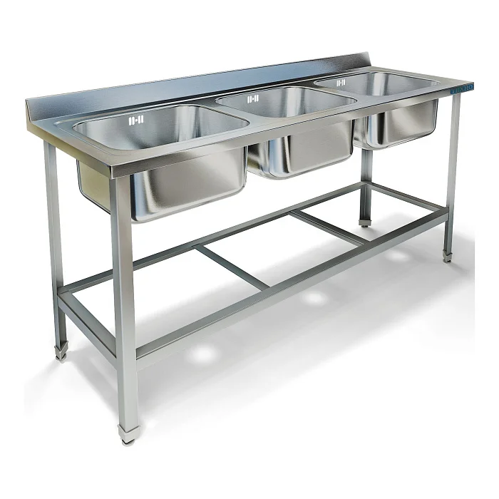 Трёхсекционная моечная ванна ВМ-48/456 — надёжный рабочий инструмент для профессиональной кухни. Подходит для мытья посуды, продуктов и инвентаря, собрана из цельнотянутой ёмкости из пищевой нержавеющей стали AISI 304 (1 мм) с шумопоглощающей прокладкой — тихо и гигиенично.
