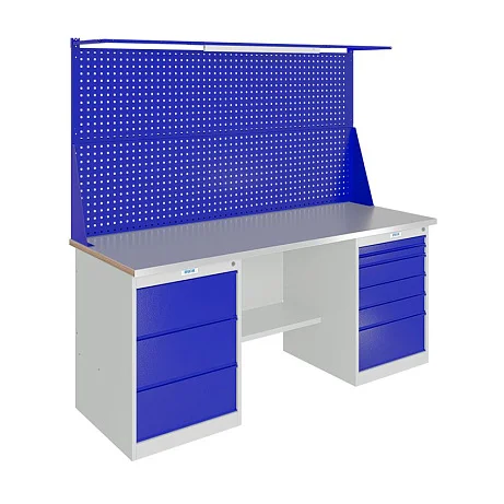 Идеально подходит для мастерских, производственных цехов и учебных классов — выдерживает интенсивные нагрузки без потери внешнего вида. Высококачественная сталь и современное полимерное покрытие надёжно защищают от царапин, ударов и ржавчины, сохраняя верстак как новый даже после многих лет эксплуатации.