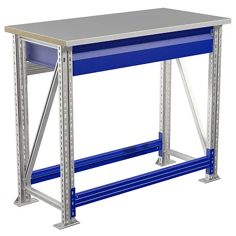 Оцинкованная сталь, из которой изготавливается каркас верстака Master (№103) MT100.MF1/MF1.100, делает изделие устойчивым к коррозии и позволяет его размещать в местах с повышенной влажностью воздуха. Опоры выполнены из профиля 55Х30 с шагом перфорации 50 мм. В качестве столешницы используется многослойная фанера толщиной 24 мм, которая покрыта оцинкованным листом. Верстак оборудован выдвижным ящиком, но при желании его можно оснастить дополнительным выдвижным ящиком и полкой. Для придания дополнительной устойчивости изделию его опоры оснащены подпятниками. Приобрести верстак Master (№103) MT100.MF1/MF1.100 по доступной цене выгоднее всего в магазине МедМебель. Заказ можно оформить прямо на сайте магазина, по Москве работает служба доставки.