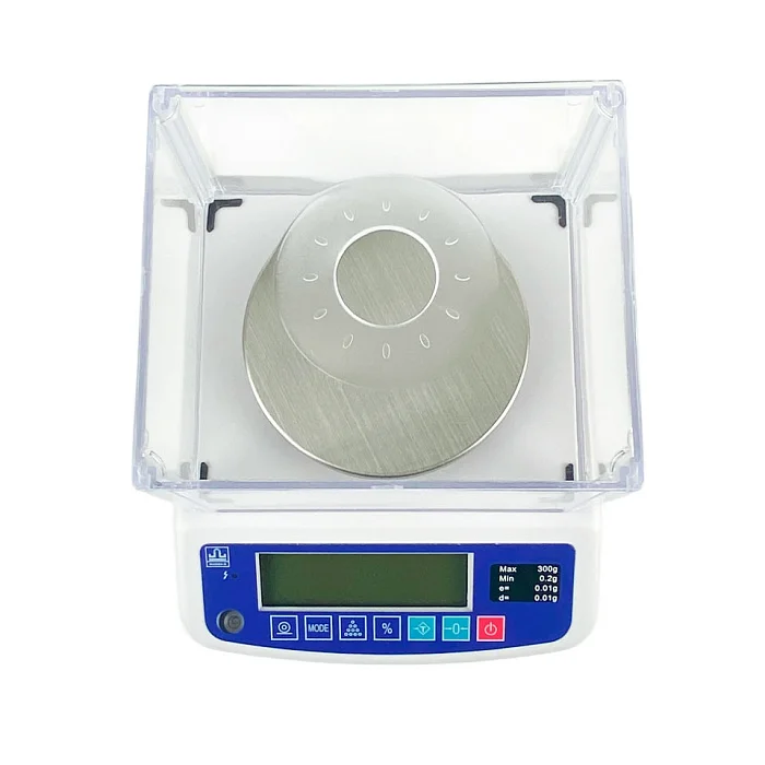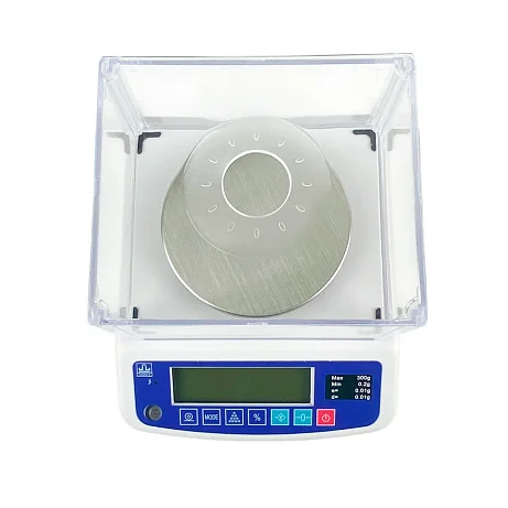 Весы лабораторные Macca-K BK-300.01 способны взвешивать смеси и вещества массой до 300 граммов. Точность весов составляет 0,01 грамма. Результаты взвешивания выводятся на жидкокристаллический дисплей. Аппарат работает от встроенного аккумулятора. Также в комплект поставки входит ветрозащитный экран.
