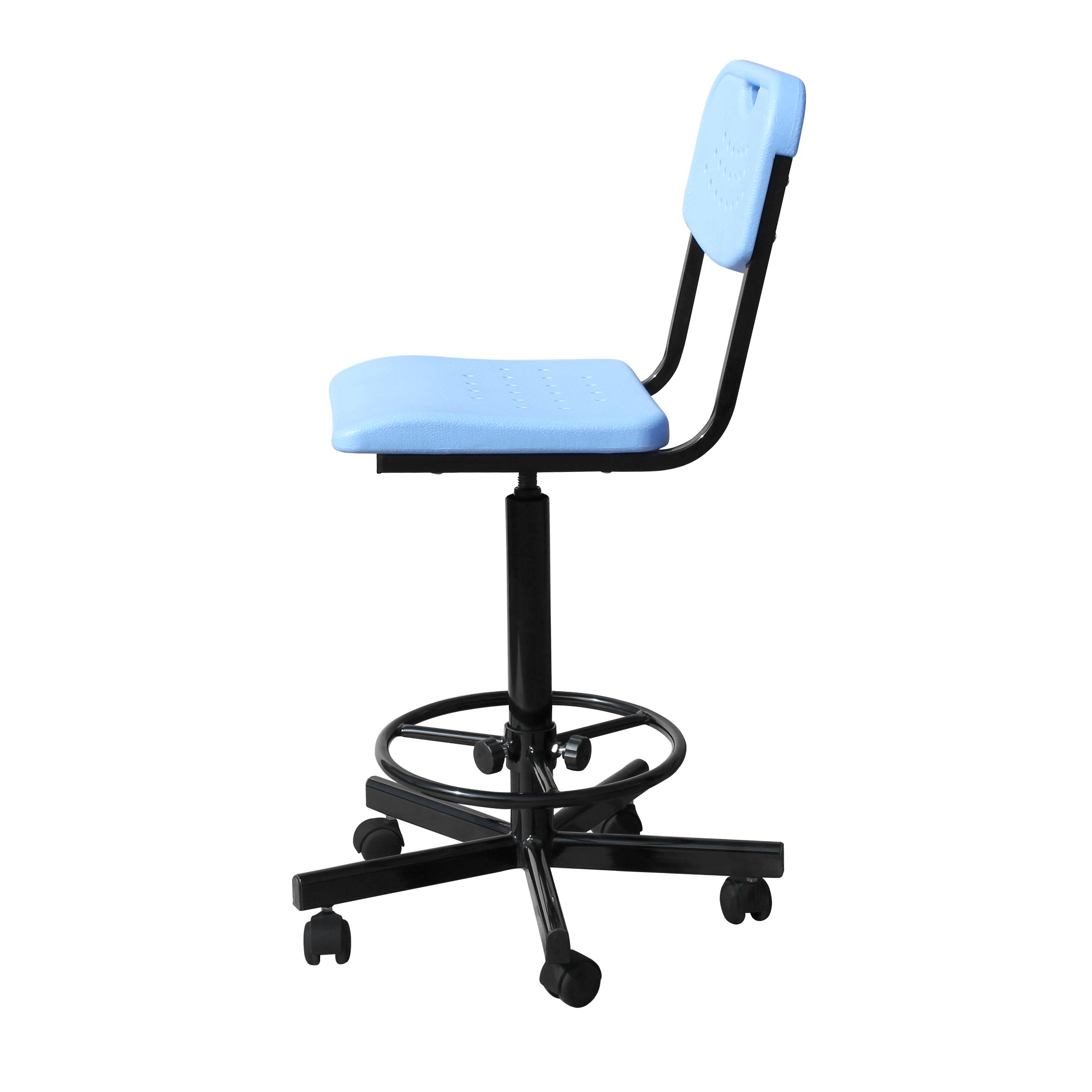 Модель разработана именно как высокий стул для лабораторий и рабочих постов с приподнятой рабочей поверхностью. Он уверенно «закрывает» типовую задачу: комфортно сидеть за столом высотой от 900 мм (от пола до верха столешницы), сохраняя правильное положение ног и не перегружая поясницу при длительной работе.