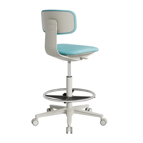 Ключевое назначение кресла — высокая посадка. КР24‑В рассчитано на работу за столами с высотой рабочей поверхности (столешницы) от 870 мм и выше. Это именно тот случай, когда обычные офисные кресла «не дотягивают», а табуреты без спинки не дают нужной поддержки. В результате сотрудник держит корпус стабильнее, меньше устает поясница, а руки удобнее располагаются на высокой столешнице, подносе, инструментальном столике или лабораторной поверхности.