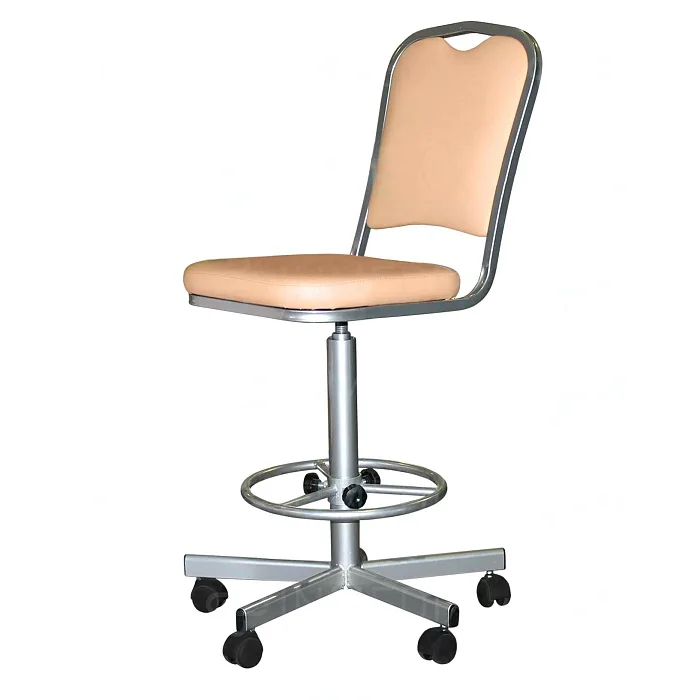 Высокое лабораторное кресло КР02-1/БП создано для работы за столами от 900 мм и выше: сиденье поднимается в диапазоне примерно от 600 до 740 мм, поэтому вы без труда подстроите высоту под себя. Модель без подлокотников оснащена надёжной винтовой опорой и удобным регулируемым кольцом для ног — даже при долгой работе ноги не «затекают» и сохраняется комфортная посадка.