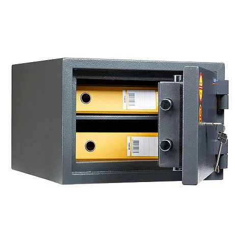 Сейф представляет собой металлическую конструкцию с усиленной лицевой панелью и толстыми боковыми панелями. Внутри одно отделение, разделенное полкой на две части, в каждой из которых можно разместить по одной папке с документацией, также в сейфе можно хранить наличные деньги и другие ценности. Сейф запирается с помощью ключевого замка Border. Возможно крепление его к полу. Магазин МедМебель обеспечит доставку данной модели взломостойкого сейфа в любой регион по выгодной цене и быстро. Заказ можно сделать прямо сейчас.