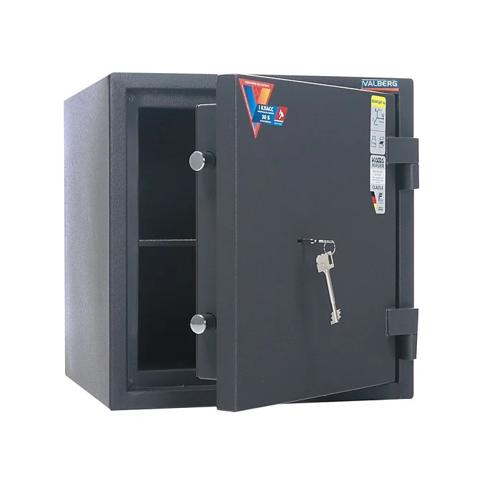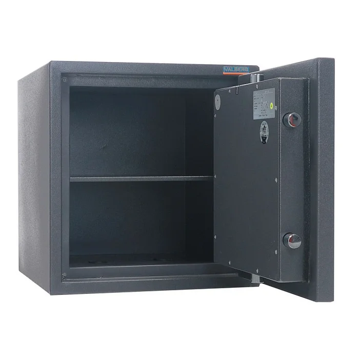 Металлический надежный сейф графитового цвета не только защитит ваши документы и ценности от взлома, но и станет надежным хранилищем при пожаре. Внутри можно поставить папки с документацией в три ряда. Закрывается сейф с помощью ключевого замка фирмы Border. Замок защищен системой блокировки от выбивания или высверливания. Крепится сейф также и к полу, однако анкерное крепление в комплект не входит. Магазин МедМебель предлагает приобрести сейф Valberg Кварцит 46 по доступной цене и с доставкой в любой регион.