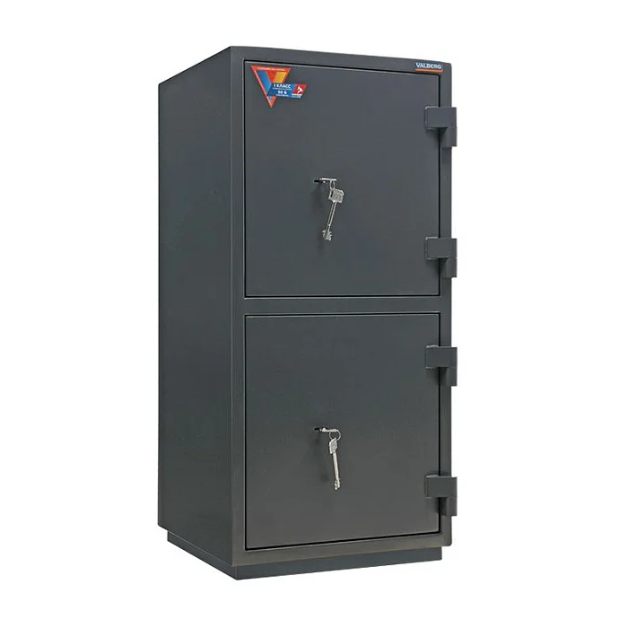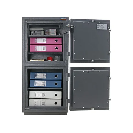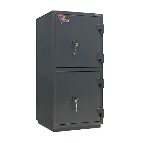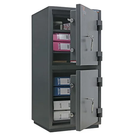 Эта модель сейфа отличается тем, что имеет не одно общее отделение, закрывающееся единой дверью, а два отделения, каждое из которых закрывается отдельной дверью с ключевым замком в каждой. Таким образом, этим сейфом могут пользоваться два человека одновременно. В остальном сейф не отличается от других моделей. Он имеет ригельную систему запирания и крепится к полу. По самой выгодной цене такой взломостойкий сейф можно приобрести в специализированном московском магазине МедМебель с недорогой доставкой.
