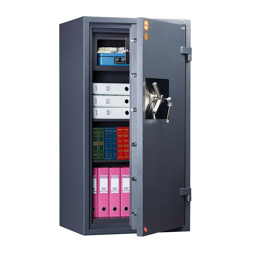 Предназначен для сохранности документов и ценностей при пожаре и взломе. Рекомендованная сумма хранения денег до 6.5 млн. руб. для физических лиц и до 2 млн. руб. для юридических лиц. Устойчивость к взлому по ГОСТ Р 50862-2017: класс 2 (ГОСТ Р).