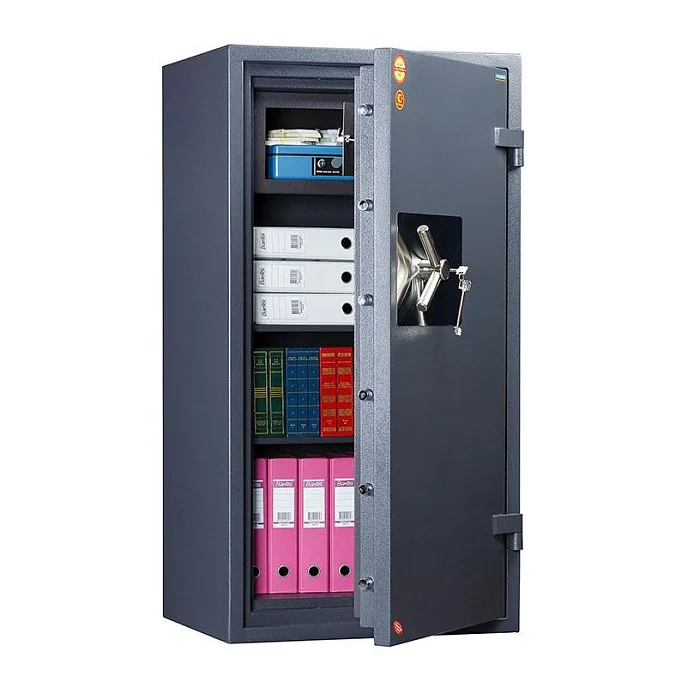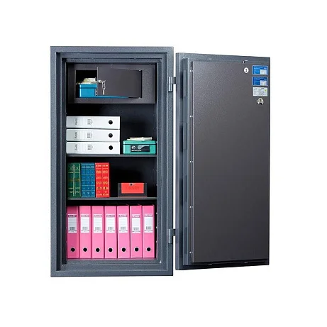 Сейф с внутренним отделением, разделенным двумя металлическими полками, закрывается толстой массивной дверью с ключевым замком KABA MAUER. Кроме того, есть и тепловой замок с огнестойким уплотнителем. Ригельная система запирания защищена от высверливания или взлома, если все же такие попытки будут, то сработает система блокировки. Сейф убережет ваши ценности не только от взлома, но и от пожара. Купить эту модель в магазине МедМебель, Москва, можно в любое удобное для вас время. Достаточно позвонить по указанным на сайте телефонам.