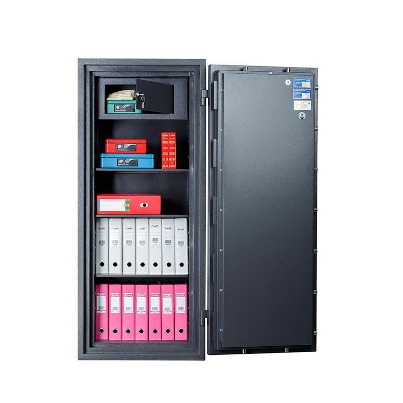 Предназначен для сохранности документов и ценностей при пожаре и взломе. Рекомендованная сумма хранения денег до 6.5 млн. руб. для физических лиц и до 2 млн. руб. для юридических лиц. Устойчивость к взлому по ГОСТ Р 50862-2017: класс 2 (ГОСТ Р).