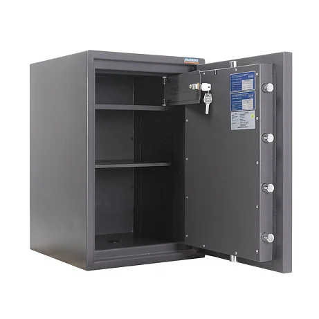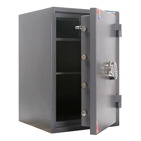 Огнестойкость этому сейфу графитового цвета обеспечивают термоактивные прокладки, а защита от взлома осуществляется с помощью ригельной системы запирания, защищенной от попыток выбивания или высверливания, и кодового электронного замка на внешней двери хранилища. В сейфе можно хранить документы и наличные деньги, не переживая за их сохранность. К полу крепится с помощью анкерного болта. По самой выгодной цене такой взломостойкий сейф можно приобрести в специализированном московском магазине МедМебель с недорогой доставкой.