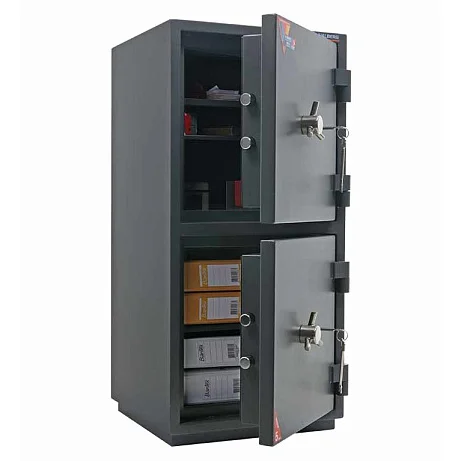 Взломостойкий сейф состоит их двух отделений, верхнего и нижнего. Каждое их них закрывается отдельной дверью, оборудованной ключевым замком. При изготовлении сейфа корпус и двери заливаются тяжелым бетоном. Ригельная система защищает сейф от выбивания или высверливания замка. От огня документы и ценности в сейфе уберегут термоактивные прокладки. Интернет-магазин лабораторной и медицинской мебели МедМебель предлагает сейфы по самым низким ценам в Москве, а также берет на себя услуги по доставке в любую точку столицы.