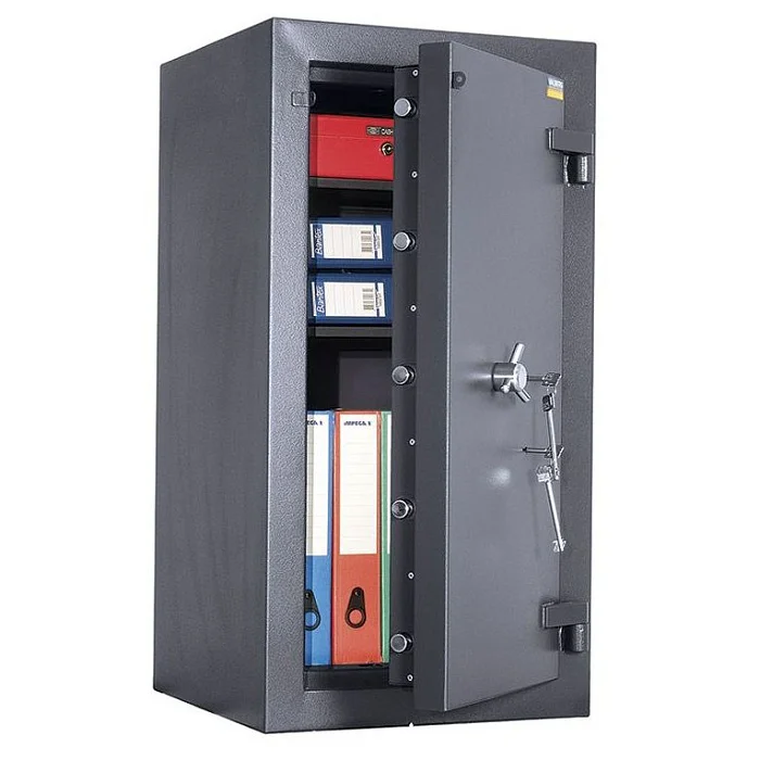 Взломостойкий сейф отлично подойдет для хранения важной документации, крупных сумм наличности, а также наркотических препаратов. Оборудован трехсторонней ригельной системой запирания двери, защищенной от высверливания и выбивания. Если такие попытки все же произойдут, то сработает система блокировки механизма, и дверь не откроется. Закрытие двери происходит с помощью двух ключевых замков KABA MAUER, к каждому из них идет по два ключа. Заказать взломостойкий сейф с доставкой выгоднее всего в московском магазине МедМебель, специализирующемся на продаже медицинской и офисной мебели.