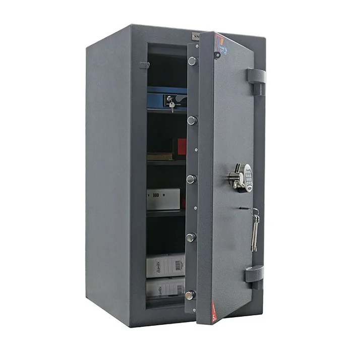 Сейф Valberg Форт 99 EL отличается повышенной степенью взломостойкости и его надежность подтверждена соответствующими сертификатами. Двери и стенки сейфа имеют многослойную защиту, а ригельная система запирания автоматически блокируется в случае возможного взлома. Сейф запирается на ключевой замок KABA MAUER и кодовый электронный замок PS 60. Купить сейф по самой выгодной цене в Москве можно в интернет-магазине МедМебель. Достаточно оформить на сайте заказ и вскоре сейф будет доставлен по нужному адресу.