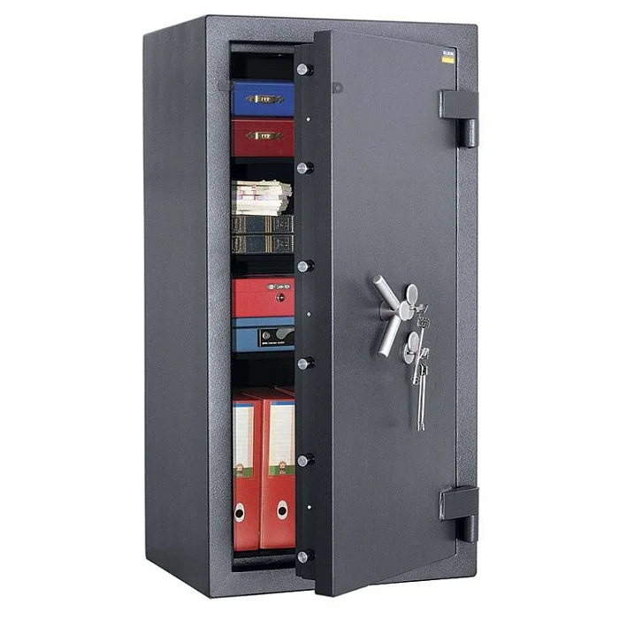 Вместительный металлический сейф подойдет для безопасного хранения ценных бумаг, наличных денежных средств и медикаментов благодаря предусмотренной системе защиты. Сейф запирается на два ключевых замка. Защита замков и ригелей от выбивания или высверливания. Многослойные дверь и стенки сейфа. Можно установить сигнализацию, для чего есть отверстие на задней части сейфа, есть устройство для опечатывания. Комплектацией также предусмотрено наличие анкерного болта для крепления сейфа к полу. Магазин МедМебель в Москве предлагает взломостойкий сейф 4 Класса Valberg Рубеж 1368 KL недорого и с доставкой по адресу.